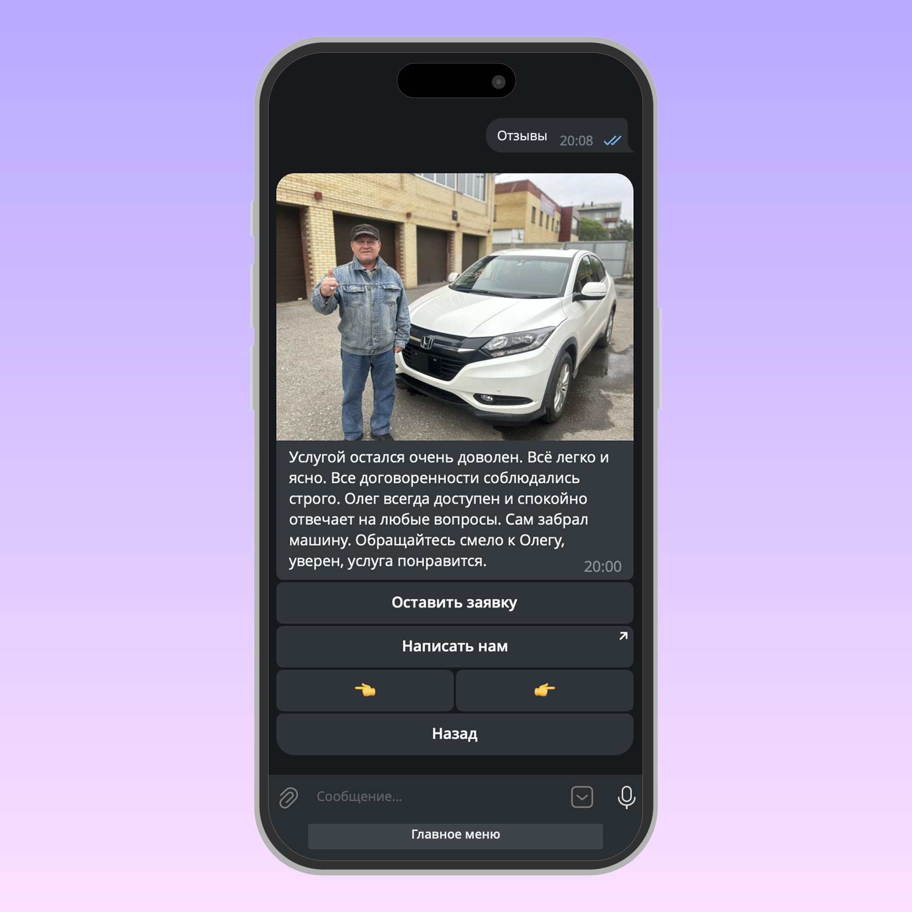 Главная причина, почему вы получите лучший бот, заключается в том, что мы специализируемся на продвижении бизнеса по привозу автомобилей из Японии, Кореи и Китая с 2018 года. Нет ни одного рекламного агентства в России, которое разбиралось бы в этой нише так же хорошо, как мы. Наши клиенты — это Япония Транзит, Джапан Лайв, ЕС Транзит, Влад Диллер, Рейтинг Автокомпаний и многие другие. Мы работаем с нишей по привозу автомобилей из Азии с 2018 года и знаем про неё всё. Мы знаем, как сделать так, чтобы ваш бот был максимально эффективен. Мы знаем, что должно быть в вашем боте, чтобы клиент оставил заявку и купил автомобиль именно у вас, а не у вашего конкурента. А ещё мы дадим самую низкую цену в России на бот для бизнеса по привозу автомобилей. Если вы найдёте подрядчика, который сделает бот с функционалом, как у нас, но дешевле, мы сделаем для вас цену ещё дешевле! Заказывая бот у нас, вы получаете лучшее решение без компромиссов!